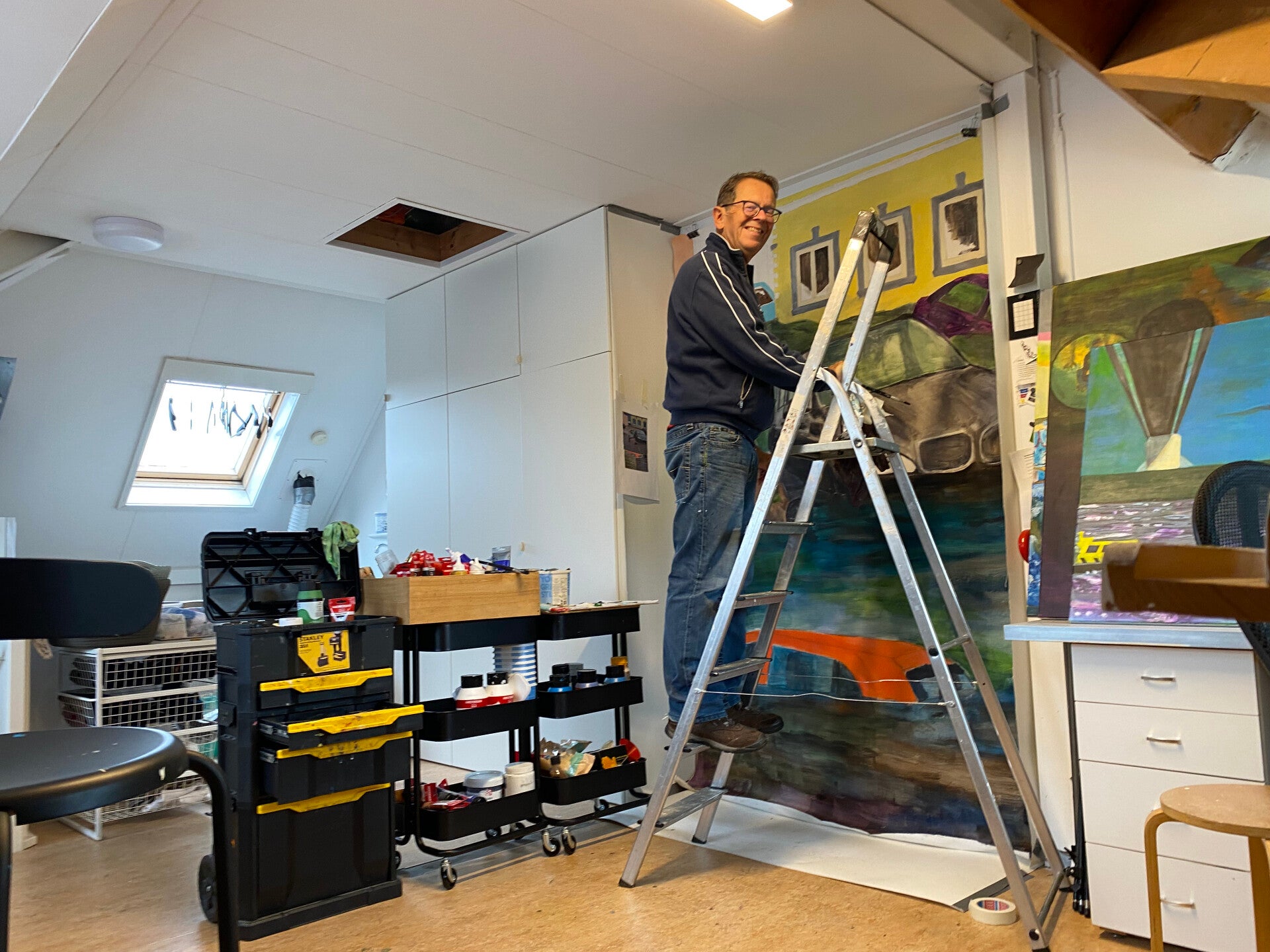 Met mijn recente werk laat ik het realisme los en experimenteer ik met een nieuwe, meer associatieve stijl. Ik combineer dit met het overschilderen van Delfts blauwe vazen in dezelfde stijl en met op Basquiat geïnspireerde wezens. De vazen kunnen worden gezien als versterking/aanvulling van de schilderijen. Het maatschappelijk engagement blijft herkenbaar.
